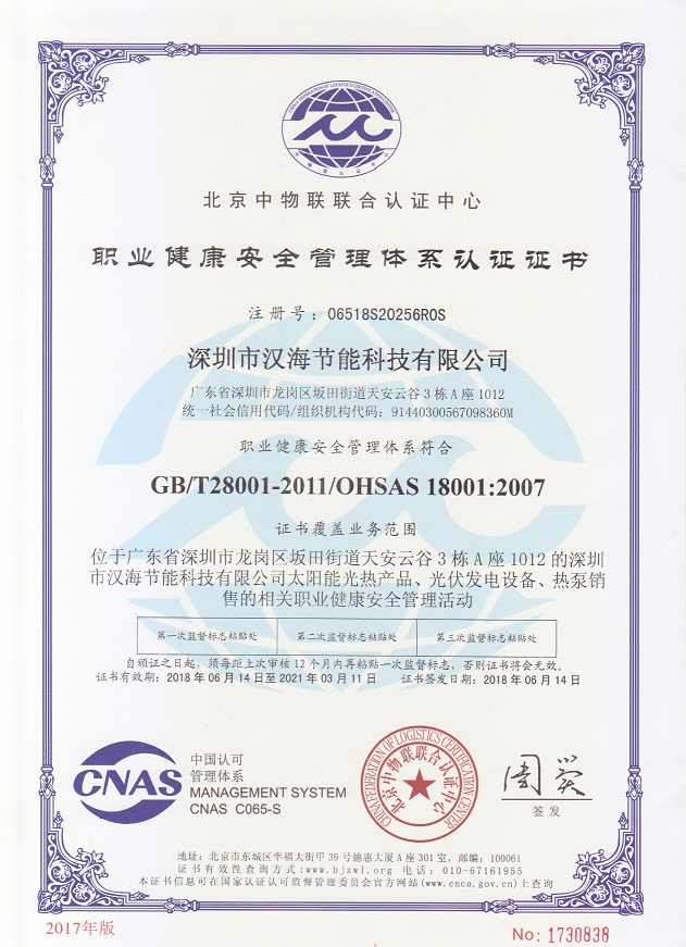 深圳市漢海節(jié)能科技有限公司成立于2011年,注冊資金6000萬元,總部設在深圳,是一家集設計、研發(fā)、施工于一體的專業化從事太陽能中央熱水工程、熱泵中央熱水工程、中央空調、光伏發(fā)電、水處理等新能源及節(jié)能環(huán)保行業的綜合服務商和工程商。在將近10年的發(fā)展歷程中,始終走在行業發(fā)展的前沿,是專業從事太陽能光熱、光伏,空氣源、太陽能熱水工程、水源熱泵,中央空調,水處理產品的設計、安裝、售后服務為一體的高新技術企業;是專業提供太陽能中央熱水工程、熱泵中央熱水工程、中央空調工程、光伏發(fā)電工程、水處理工程、太陽能熱水工程等全面解決方案的供應商和工程商,產品涵蓋太陽能集熱器、空氣源熱泵、水源熱泵、中央空調、光伏組件、太陽能熱水工程等,是新能源的倡導者和推動者。公司成立以來,始終秉承“誠信、責任、專業、高效”的服務宗旨,以市場需求為導向,以為客戶創造價值為己任的精神,不斷開拓創新,通過多年的快速發(fā)展,公司綜合實力躍居行業前列。漢海擁有一支經驗豐富、善打硬仗的專業高效團隊;擁有一批專業的高級工程師、中級工程師、二級建造師、造價工程師、電氣設計師、給排水設計師;擁有一批機電、安防、水、電等專業技術施工和售后人員,配備先進齊全,實力雄厚,技術領先。漢海以質量樹信譽、以工藝立標桿、以管理創效益、以服務得人心,工藝水平在業界獨樹一幟,成為行業模仿的典范。漢海承建的機電工程(設計、施工)涉及星級酒店、賓館、高檔辦公樓、花園別墅、住宅小區、學校、水療中心、工廠等各種類型的工程,工程項目遍布全國各地。漢海將致力于成為全球信賴的新能源綜合服務商,為客戶提供新能源的全方位解決方案。未來,漢海將依托國家政策,積極開拓粵港澳大灣區、中國特色社會主義先行示范區市場及“一帶一路”沿線國際市場,推動新能源的新輝煌。